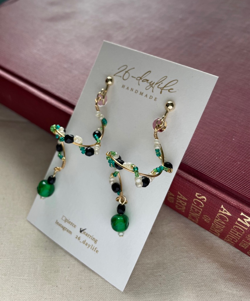 ここでしかない作品。クルクル作品です。ハンドメイドアクセサリーならでは!現在心ときめく作品を制作中です。今しばらくお待ち下さい!インスタ更新も行ってます。