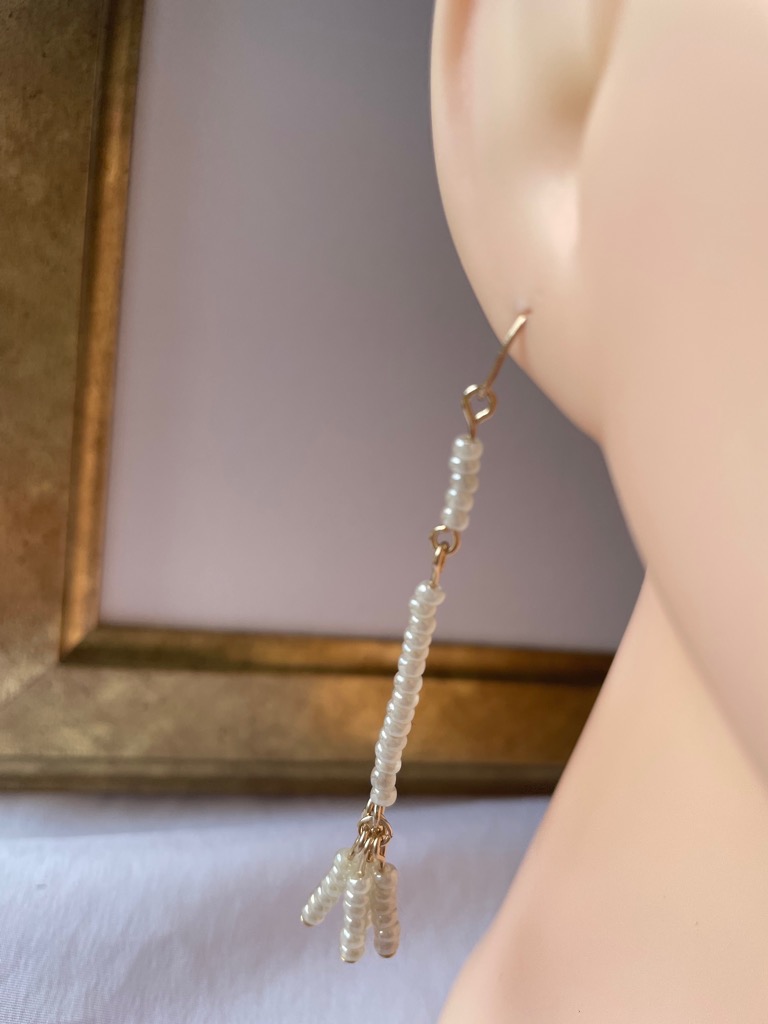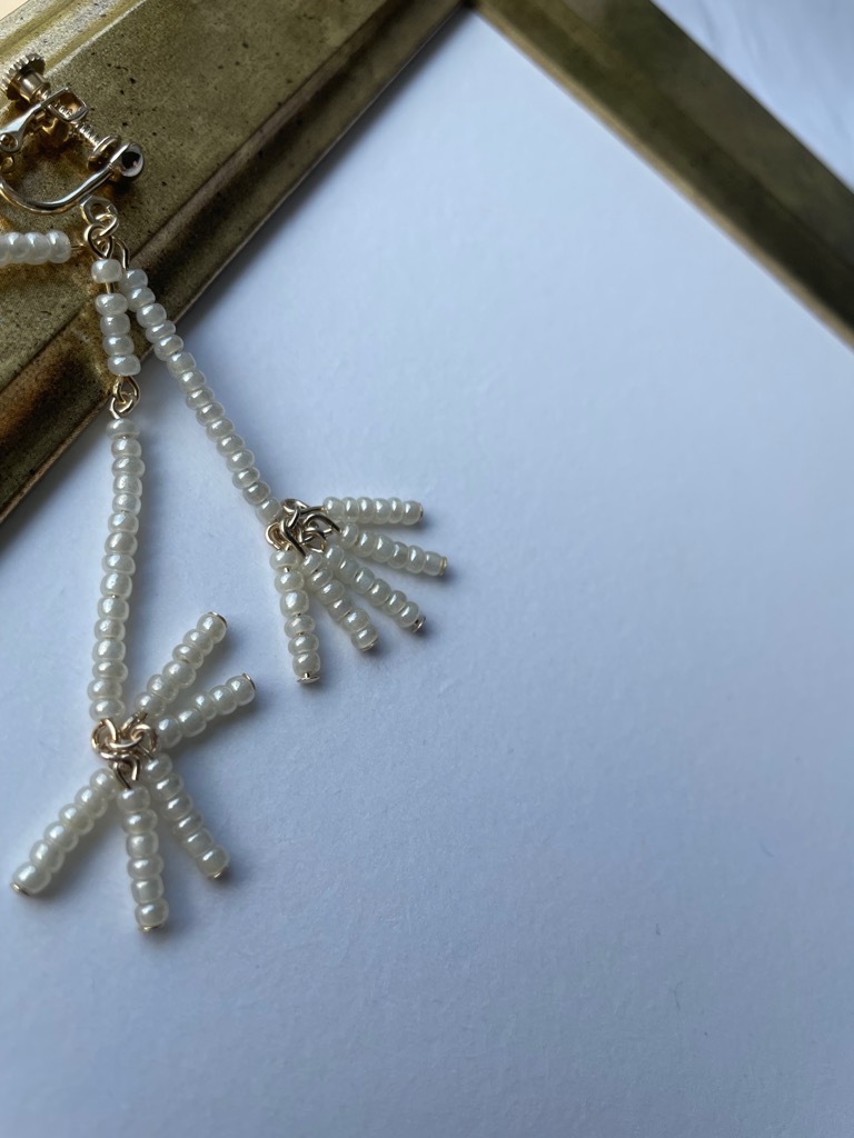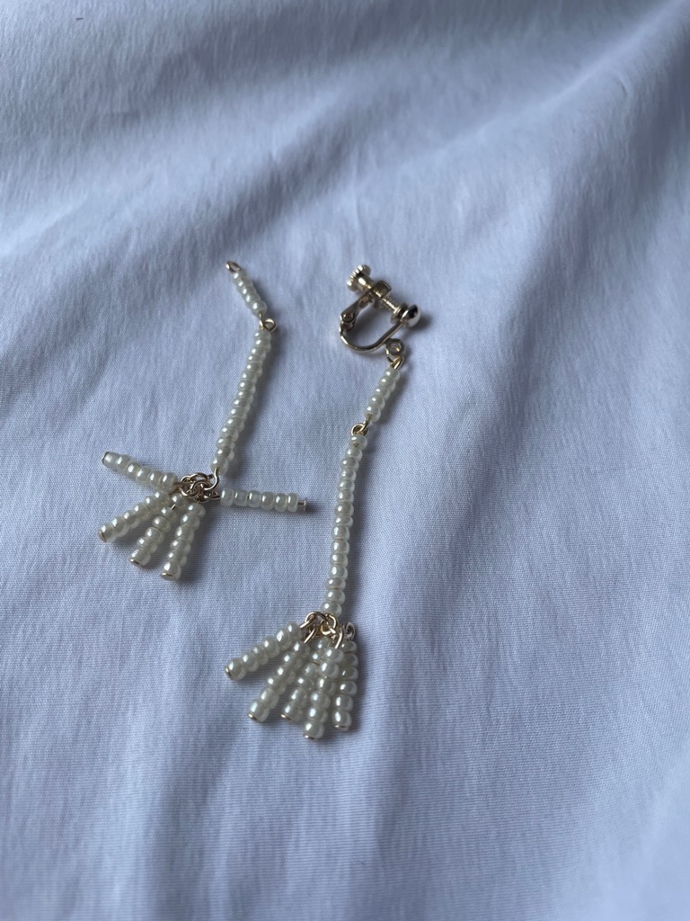 ヴィンテージパーツ(ガラスビーズ)のみを使用した作品になっております。 揺れ感が素敵! シンプルデザインだからこそ色んなスタイルのお供に! ハンドメイドアクセサリーという個性。 再販は致しません! 一点物ですので気になる方はお早めに!!こちらまで💁♀️
