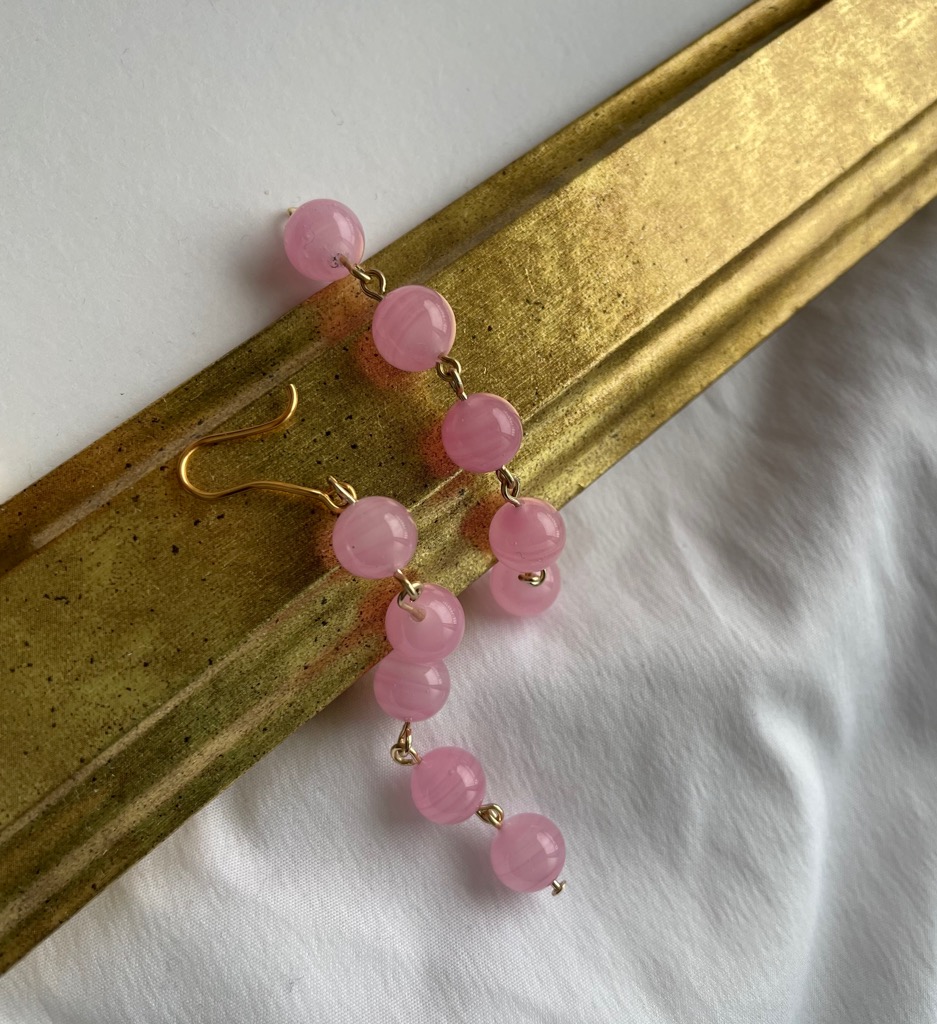 ピンクのガラスビーズのみ使用したハンドメイドアクセサリーです! こちらもヴィンテージビーズを使用しております! 見た目重そうと思うと思いますが26-daylifeでは日常でもつけ頂けるように重くないアクセサリーを作成しております! こちらは一点ものです♪ 気になる方はこちらまで💁♀️