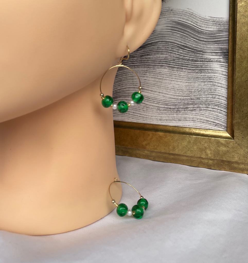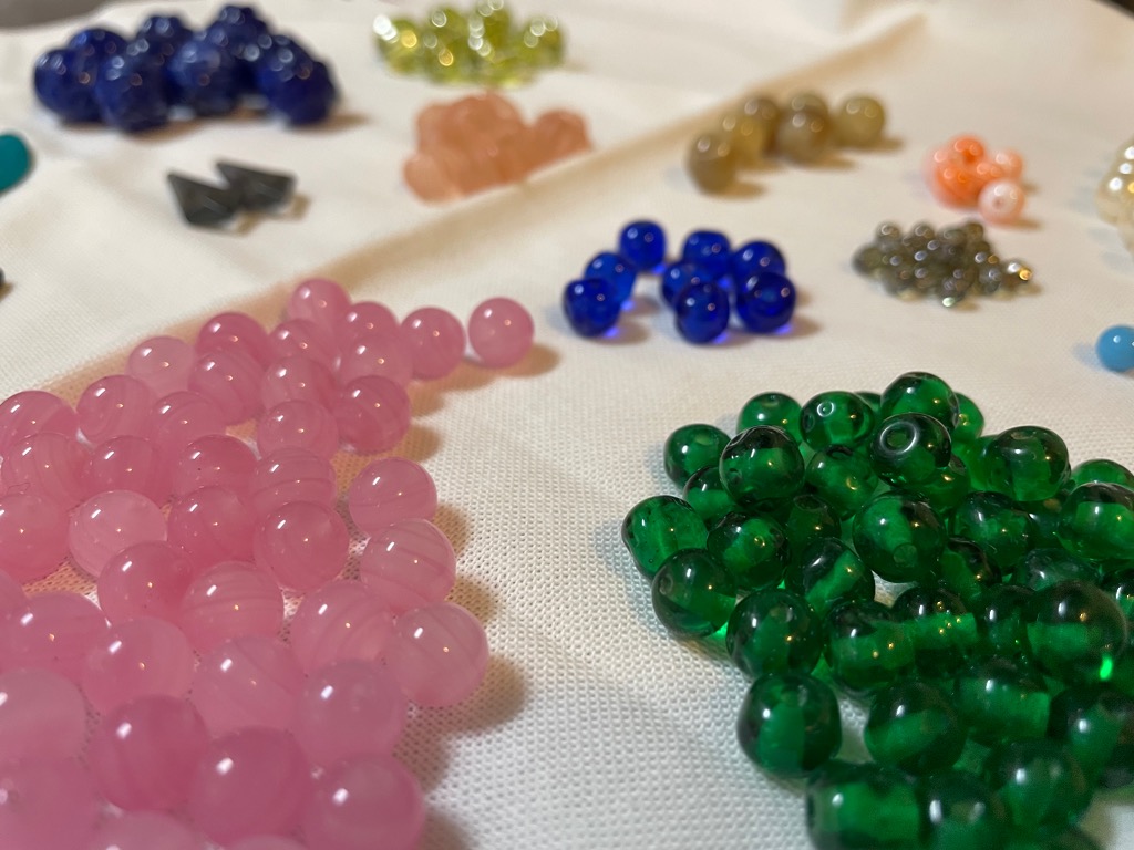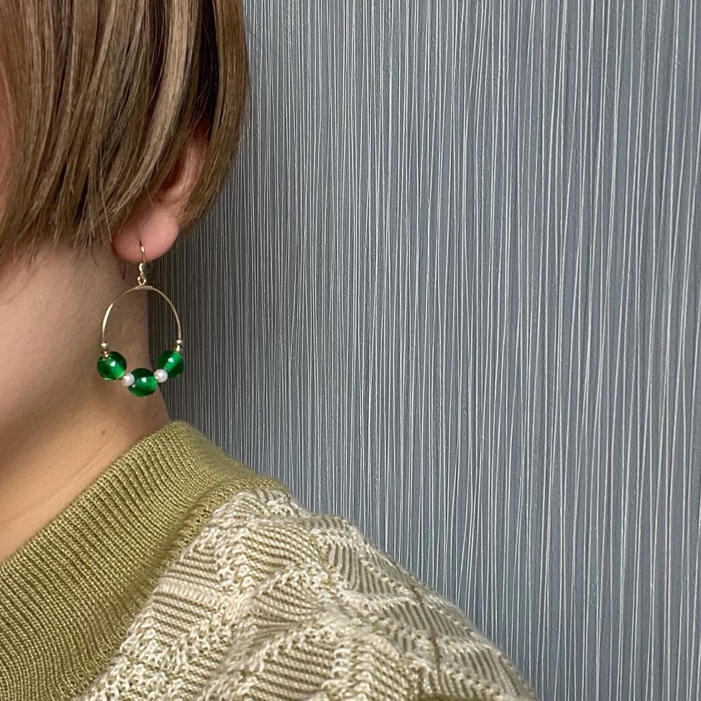 使用しているパーツは ・アクリル製パール ・ジャパンヴィンテージのガラスビーズ(緑)です。 ガラスビーズはよく見ると凹凸があり一つ一つ個性のあるパーツを使用しております! 本日からSTORESで販売しております♪ 一点ものですので欲しい方はお早めにどうぞ!!