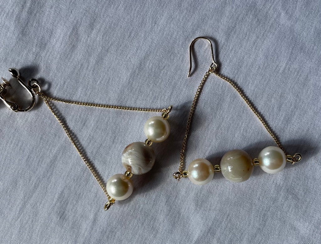 新しい作品をご紹介致します! こちらは主にヴィンテージのガラスパールと大理石カラーのビーズを使用したハンドメイドアクセサリーになっております! パールの照り感がとてもシックな味わいになっており おしゃれ着からシンプルな服装までご利用頂ける作品です!! もしご興味がありましたらこちらまで また、一点物ですので欲しい方はお早めに!!